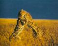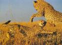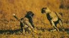 Маленькие гепарды ходят довольно неуклюже, но со временем и они вырастут в быстрых бегунов. Ведь гепарды быстрейшие звери в животном мире Земли. Они могут развивать скорость до 100 –110 км в час. Тело гепарда словно создано для неудержимого бега. На длинных, мощных ногах этим животным удается передвигаться на удивление изящно. Когда они бегут быстро, то заносят задние ноги за передние. На таких высоких скоростях очень сложно добиться устойчивости. В этом гепарду помогают длинные когти, врезающиеся в мягкую почву саванны. Без этого дополнительного сцепления с землей гепард мог бы потерять опору и тяжело травмироваться. Кроме быстрого бега гепарды способны и на гигантские прыжки длинной почти 6,5 метров. Ни один человек, даже победитель Олимпийских игр, не способен на такой прыжок.