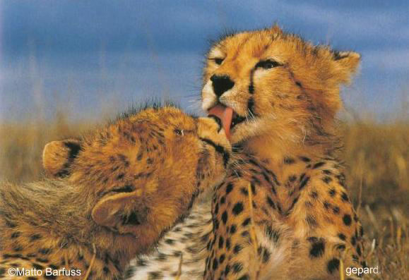 После еды гепарды обычно умывают друг друга вычищая друг другу шерсть своими шершавыми языками.